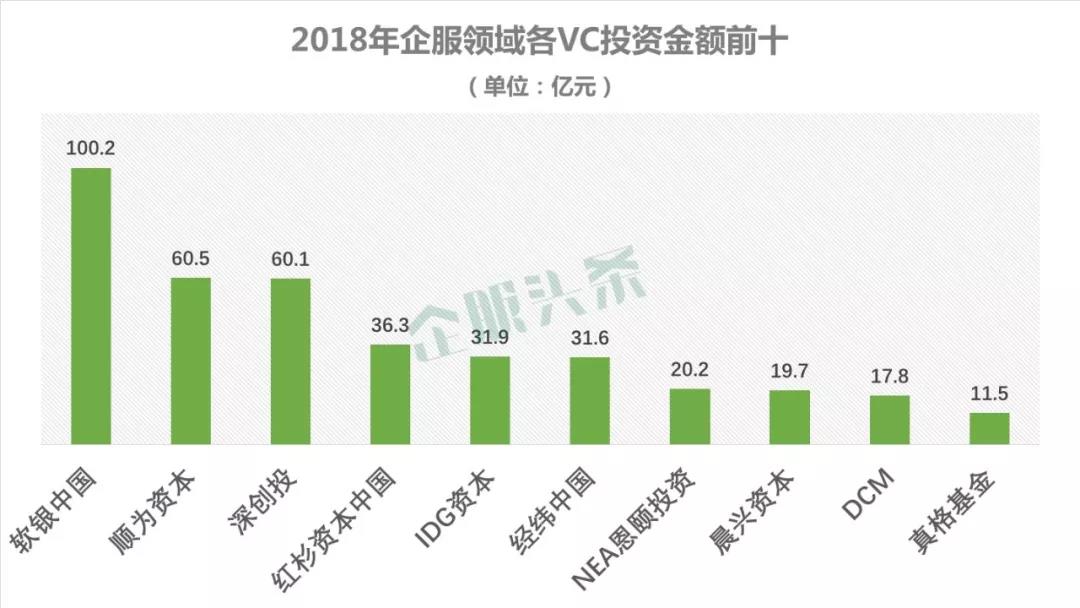 今年軟銀中國大半的資金涌入了汽車交通、文化娛樂等方面,再加上在企服領(lǐng)域投資了商湯、WeWork等獨角獸企業(yè),都比較燒錢,所以雖然軟銀中國在企服領(lǐng)域投資數(shù)量不多,但投資金額排名會比較靠前。